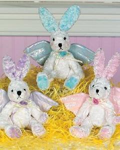 身長 12.5cm大のぬいぐるみです。背中に天使の羽を付けたかわいいバニーです。 ※お色はお任せください。