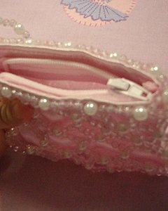 [商品説明] プリンセスの衣装には欠かせないサテン地とビーズのパーティーバッグ。