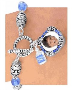 [デザイン] シルバー調のチェーンにサークル (ブルー)、四角 (ピンク)、ハート型 (オレンジ)の形をしたフォトフレームのチャームが揺れるトグルブレスレットになります。お子様、ご家族、ボーイフレンドの写真をはめていただけます。フレームにはラインストーンが埋め込まれていて綺麗です。トグルタイプですので腕はもちろん、バッグのハンドル部分に付けてもかわいいです。