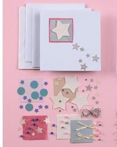 星をテーマにしたグリーティングカードのキットです。カード 6枚、封筒 6枚、 3種類の絵柄のエンベリッシュメントが入っています。