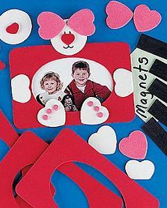 キットのハートとクマのスポンジフォームを赤のフレームに貼り付けてフォトフレームを作成する工作キットです。母の日のプレゼントにもいいですね。