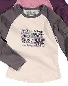 [色・デザイン] オフホワイトに柔らかな茶色のツートーンの Tシャツ。フロントにゴシック調の文字がプリントされていてお洒落です。