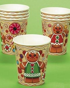 お菓子の国から飛び出してきたような、かわいいジンジャーブレッドマンの絵柄のコップ、 8個セット。