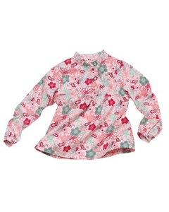 [色・デザイン] ピンク地に花柄模様のチュニック風ブラウス。フロントボタン(トップ 3個)開閉。ハイウエスト切り替え。