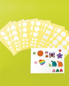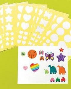 大小 2種類の無地のシールシートになります。 ご家庭の色鉛筆やマーカーでシールの表面にお子様が自由に絵や模様を描いて世界に 1つしかないシールを作成できます。シールの形は丸、星、蝶、ハート、恐竜、車の 6種類になります。 1シートに 9枚のシールが付いています。