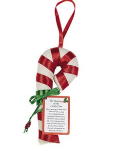 綿が詰まった布製のキャンディースティックにリボンを縫い付けて作るオーナメントキットです。 3個のオーナメントが出来上がります。