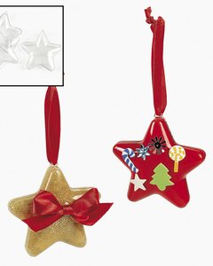 星型の透明プラスチック製オーナメントです。オーナメントの中に飾りを入れたり、表面をクレヨンや油性マーカー、アクリルペイントなどで色付けして、オリジナルのオーナメントを作成します。