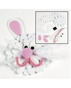 花の形のフォームピースを重ね合わせてウサギの顔に仕立てます。キットのマグネットを裏に貼ったらかわいいウサギのマグネットが出来上がります。冷蔵庫等の表面に貼ってお楽しみください。