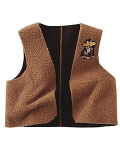 [色・デザイン] 表地はダークブラウンのシープスキン調、裏側ボアになります。胸元のビーズ刺繍がお洒落。リバーシブルタイプですが、ボア面のネックラインにタグが付いています。