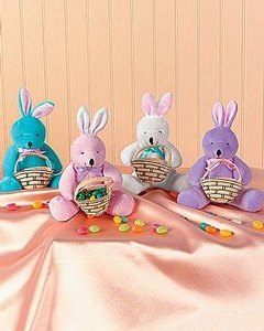 身長 12.5cm大の小さなぬいぐるみの置物です。両手にフエルトで出来たバスケットを抱えていて、中にメッセージカードが入っています。バスケットの中にキャンディーやチョコレートを入れて卓上に置くだけでイースターの雰囲気が伝わってきます。