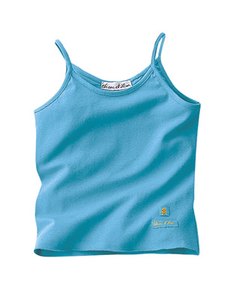 [色・デザイン] 鮮やかな水色のタンクトップ。裾にロゴラベルがワンポイントで入っています。
