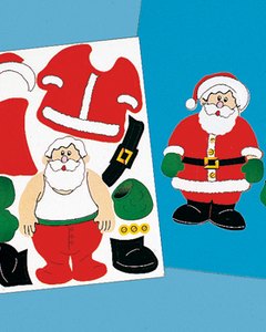 サンタさんにスーツを着せてあげるシールワークです。 シールシートの大きさは 12cm x 17cm。