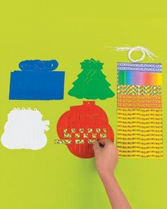 プレゼント、ツリー、雪だるま、オーナメントの土台に模様の入った紙を織り込んで作製するデコレーションのキットです。 1セット 4個入り。織り込んでいく模様の紙はお任せください。
