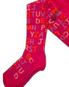 [色・デザイン] 英語で “Hot Pink” と呼ばれる鮮やかなピンク地にアルファベットの文字が色とりどりに入ったタイツです。 ミニスカートや無地のスカートやジャンパースカートにどうぞ。