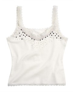 [デザイン] シルバーのスパンコールとビーズ刺繍がお洒落なタンクトップ。レース使いがお洒落です。