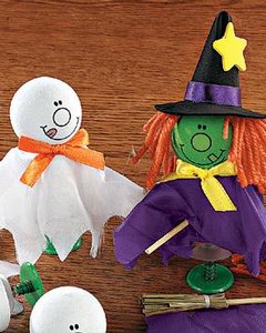 球とマスマロ型のスポンジフォームを重ねた人形に衣装を着せて出来上がり。ゴーストと魔女の 2体セットになります。