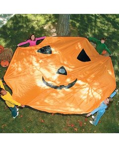 直径 3m 60cmのジャコランタン型パラシュート。持ち手が 8箇所に付いています。平たいジャコランタンをふんわりと空中に広げて楽しんだり、パラシュートの中央に軽い物(スポンジ製のボールなど)を乗せて空中に舞い上げて皆で協力してキャッチして遊びます。