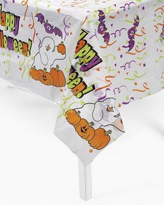 ハロウィンの絵柄がとってもかわいい薄手のビニール製テーブルカバーです。イベントの際に活躍する一品です。スーパーのレジ袋を2枚合わせたくらいの薄さですので、ピクニックマットとしてのご使用はお控えください。あくまでもデコレーションとしてテーブルや家具の上を飾りつけるためのカバーです。