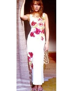 [色・デザイン] オフホワイトに大きなバラのプリント。ロング丈のワンピースドレス。背中ファスナー開閉。肩のストラップが大変お洒落です。結婚式などにも着ていただけます。
