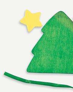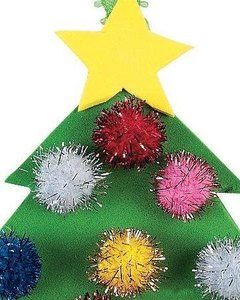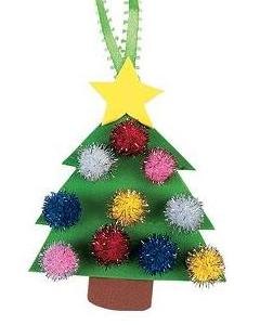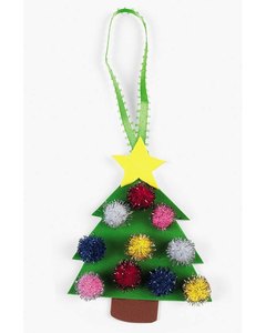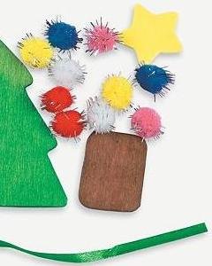 木製のツリー型ピースにキットのポンポンやフォームピースを貼り付けて仕上げるオーナメントのクラフトです。