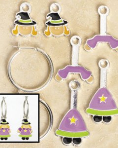3枚のエナメルチャームを重ねて作る魔女のイヤリングです。イヤリングとしてではなく、バッグやジャケットなどに付けてもかわいいです。