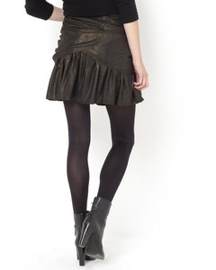 お色は黒。ラメが入ったような光沢のある素材です。ビスコース地ならではのなめらかでさらりとした感触とシルクの様な光沢、ドレープの美しいスカートです。