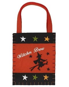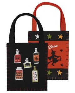 厚いフエルトでできたかわいいトリートバッグ。オレンジは Witches Brewの刺繍と魔女のアップリケ、ブラックは魔法の薬が詰まったポーションボトルのプリント。