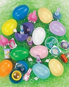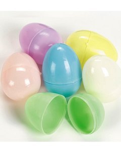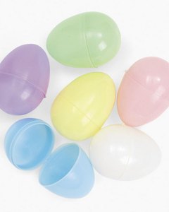 エッグ型のプラスチック容器です。中にお菓子やおもちゃを詰めてエッグ・ハンティングにお使いください。お色の選択はできません。