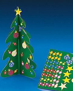 2枚の厚紙を組み立てたツリーに付属のシールで飾りつけするキットです。デコレーション用のシールは 90枚付いています。