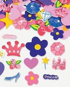 プリンセスをテーマにしたスポンジフォームピースです。 1袋に約 200ピースが入っています。シール状になっていて便利です。