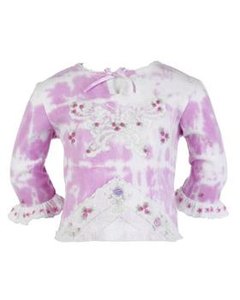 [色・デザイン] ホワイトとピンクのタイダイ柄。フロントに蝶のレース刺繍。裾にもレースの切り替えが入っています。