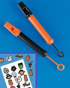プラスチック製のシンプルな縦笛にデコレーション用のシールが付いています。 1 - 1.5cm大のシール 24枚をオレンジと黒の笛に貼り付けてハロウィーンにぴったりな笛を完成させてください。 笛はオレンジと黒の2色組です。