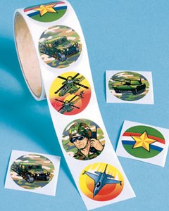 直径 3.5cm 大の軍隊のイラストシールです。 6枚のシールは全て絵柄が異なります。