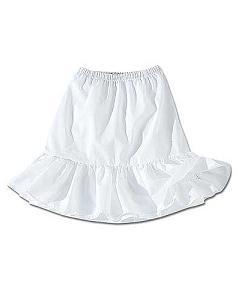 [色・デザイン] 白のアンダースカートです。ウエスト総ゴム。ワンピースやフォーマルなドレスの下に着用し、ふんわりとボリュームを作ります。ウエスト両サイドにボタン穴が付いたコードが付いています。ドレスの裏地にボタンを縫い付けることでペチコートのずれ落ちを防げます。