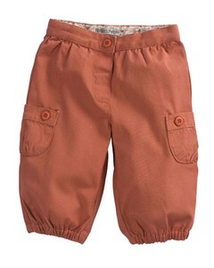 [色・デザイン] お色はオレンジ。両サイドにポケット付き。裾にゴムが入っています。ウエストライン内側の小花プリントがお洒落。