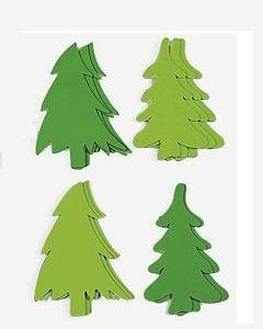スポンジフォーム製のもみの木型ピース。緑と黄緑色の 2色組。別売りのスポンジフォームやご家庭の折り紙やボタン、フエ ルト、スパンコールなどのクラフト素材で飾り付けてください。壁に貼ったり、裏面にメッセージを添えたりするのもいいですね。