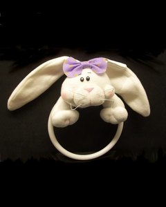 フリース地のかわいいバニーが付いたタオルハンガーです。フックに掛けるタイプです。
