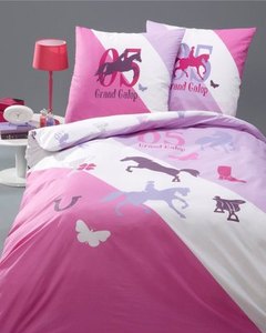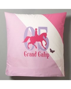 [デザイン] 濃淡のあるピンクと白が斜めに配色されていて、中央に馬のシルエットがプリントされています。表面と裏面で色の配色と馬のシルエットが異なります。エ ンベロップタイプでファスナー開閉ではありません。