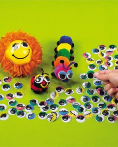 25mm大の大きな目です。赤、青、黄色、緑の 8個入り。プラスチック製。クラフトにどうぞ。