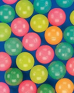 直径 2.5cm大の蛍光色のスーパーボールです。お色は赤、黄色、緑の 3色。画像にはオレンジも映っておりますが、販売しているのは赤、黄、緑のみです。