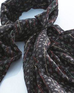 [色・デザイン] 黒地に赤、緑、ゴールドのメタリックなストライプ。ハートと音符、星模様。