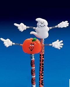 “Jack-O-Lantern”とゴーストのキャップです。ご家庭の鉛筆に付けて楽しめます。2個セットの場合はペアで、1個お求めの場合はパンプキンのお届けとなります。