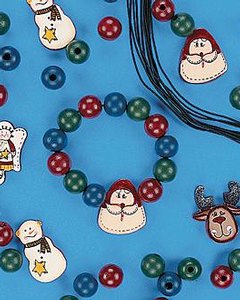 1cm大の木製ビーズと 3 - 4cm大のスノーマンやトナカイのピースで作るブレスレットのキットです。 ※ 絵柄はお任せください。