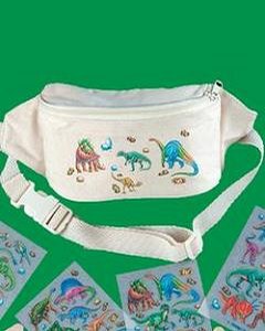 1シートに 5mm - 3cm 大のモチーフが 20個前後入った転写シートです。キットのへらを使って Tシャツやバッグ、帽子など布の表面に擦るだけで鮮やかな恐竜のモチーフが写ります。
