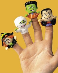 ハロウィンのキャラクターの指人形です。 1セットに魔女、ミイラ、フランケンシュタイン、ドラキュラの 4キャラクターが揃っています。 ご家庭で、育児サークルで、児童英語のクラスで活躍するアイテムです。