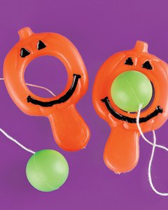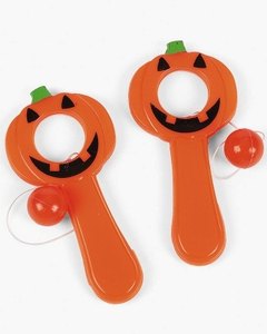 “Jack-O-Lantern”の真ん中の穴目掛けてゴムの先に付いているグリーンのボールを引っ張ってはじいて入れるゲームです。英語で “Bull's eye!”と言うと 「大当たり !」 と言った感じの言葉になります。