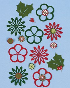 クリスマスをテーマにしたヒイラギや花のブラッズ 5種類。大きなピースと小さなブラッズを重ねて使うフラットタイプになります。カード作りやスクラップブッキングにどうぞ!!