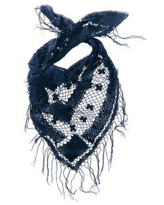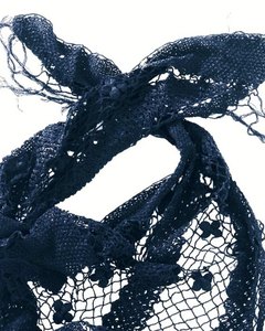 [色・デザイン] お色は藍色、クロシェ編み。フランス人歌手マリアンヌ・ジェームスが通販会社とコラボでデザインしたお洒落なショールです。