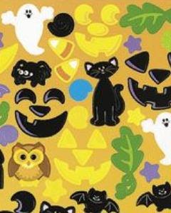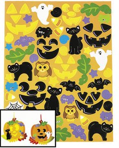 13cm大のパンプキン型台紙にシールシートのシールを貼付けて作るジャコランタンのオーナメントキットです。シールシートには 75枚のシールが付いています。