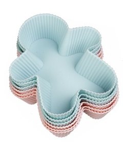 ジンジャーブレッドマンの形をしたかわいいカップケーキ型 6個セット。水色とピンクの 2色入り。ゼリー型としてもお使いいただけます。シリコン製で、食洗器使用可。